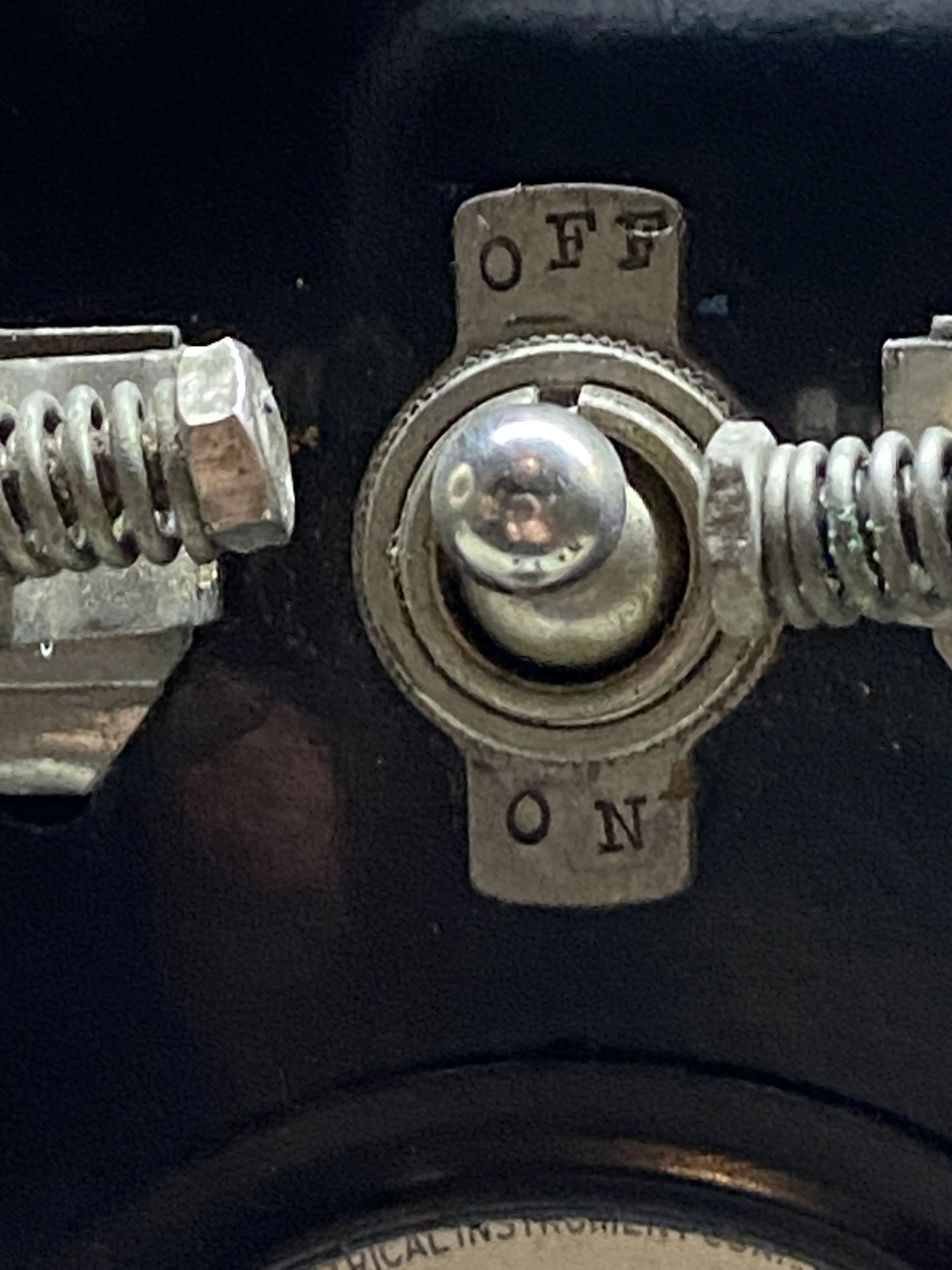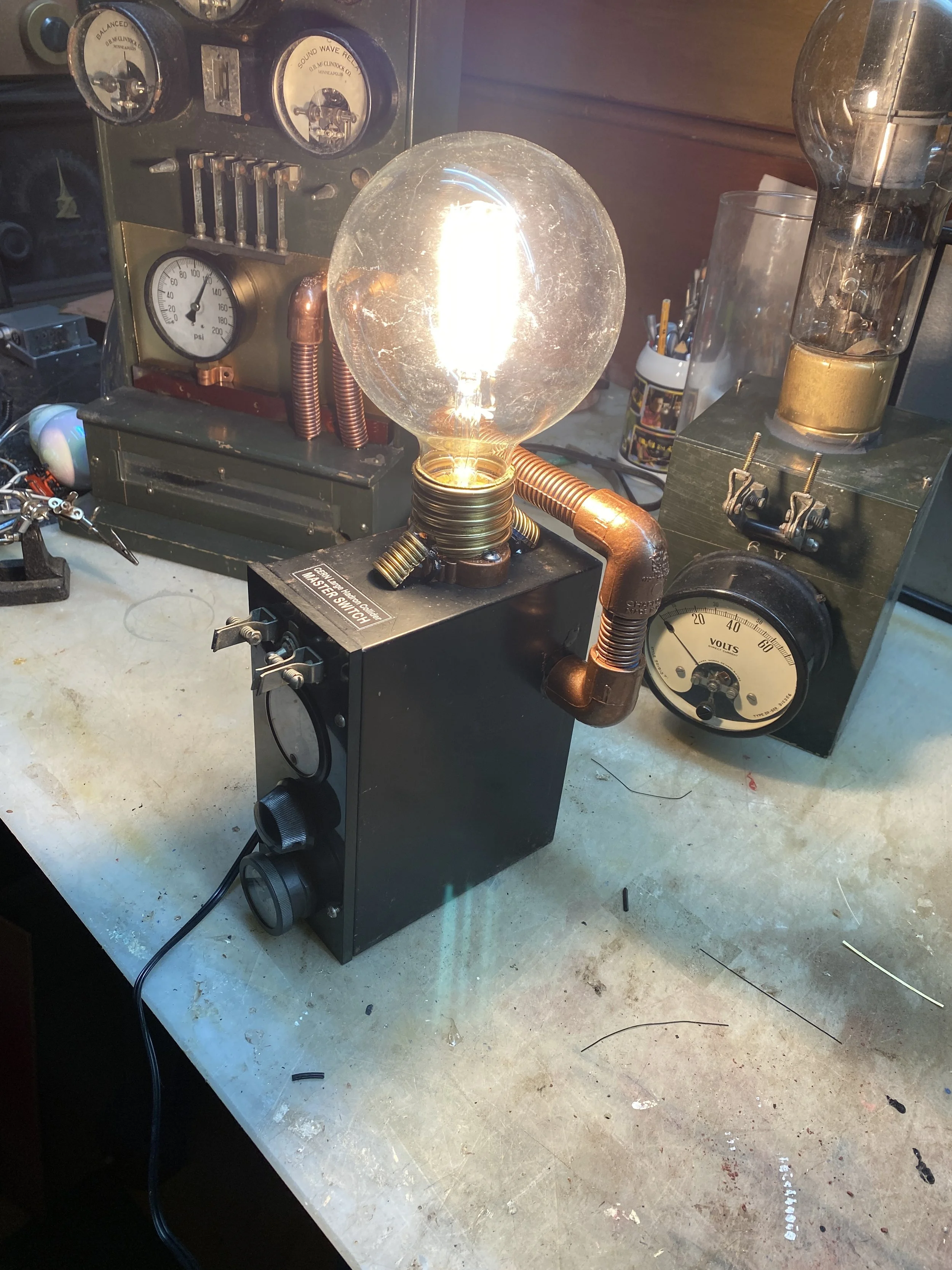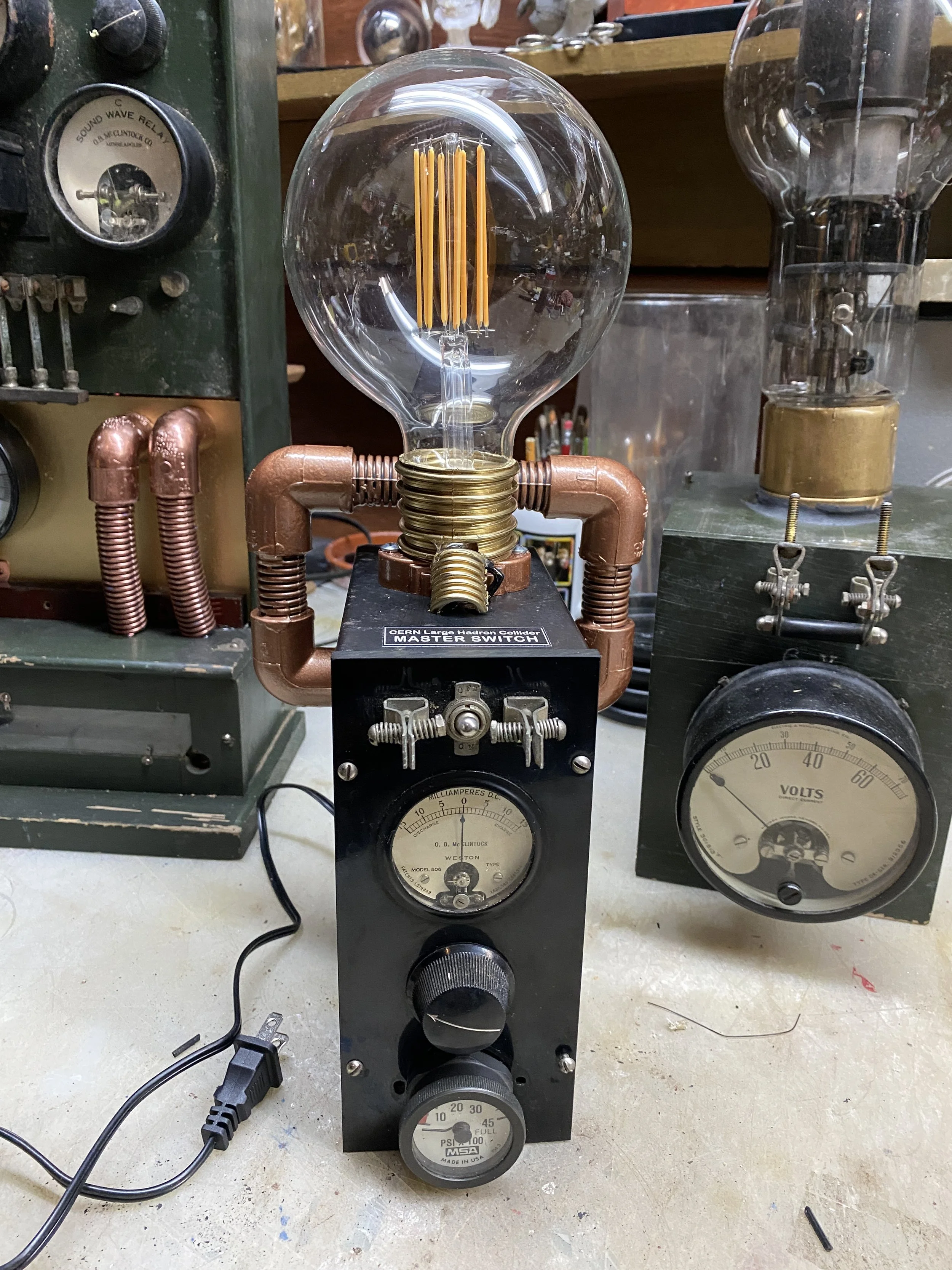 The components are made using ordinary vintage testing equipment gauges not originally intended for time travel purposes—manufacturer cannot guarantee accuracy of this device. The cabinet is vintage painted wood.
