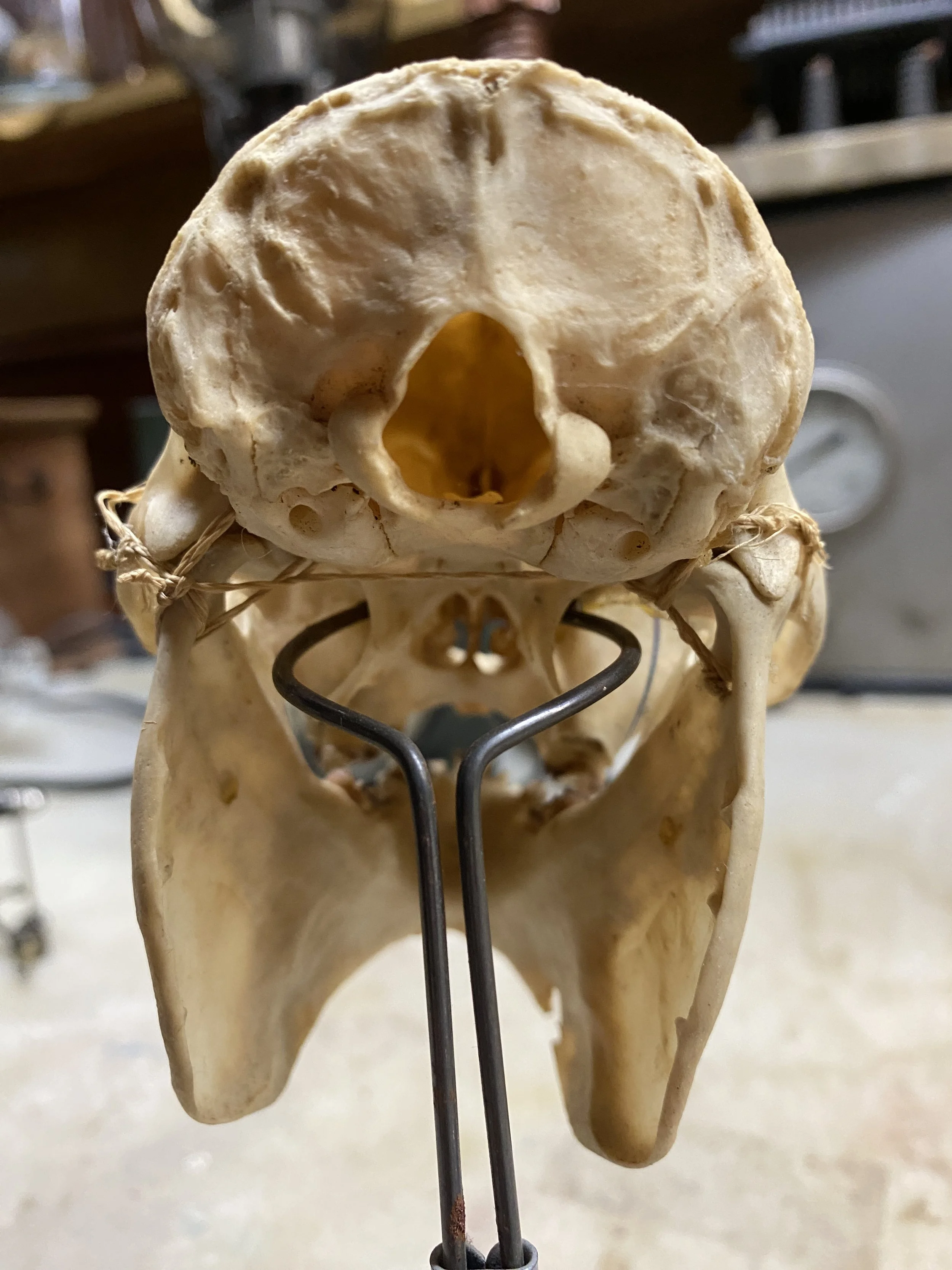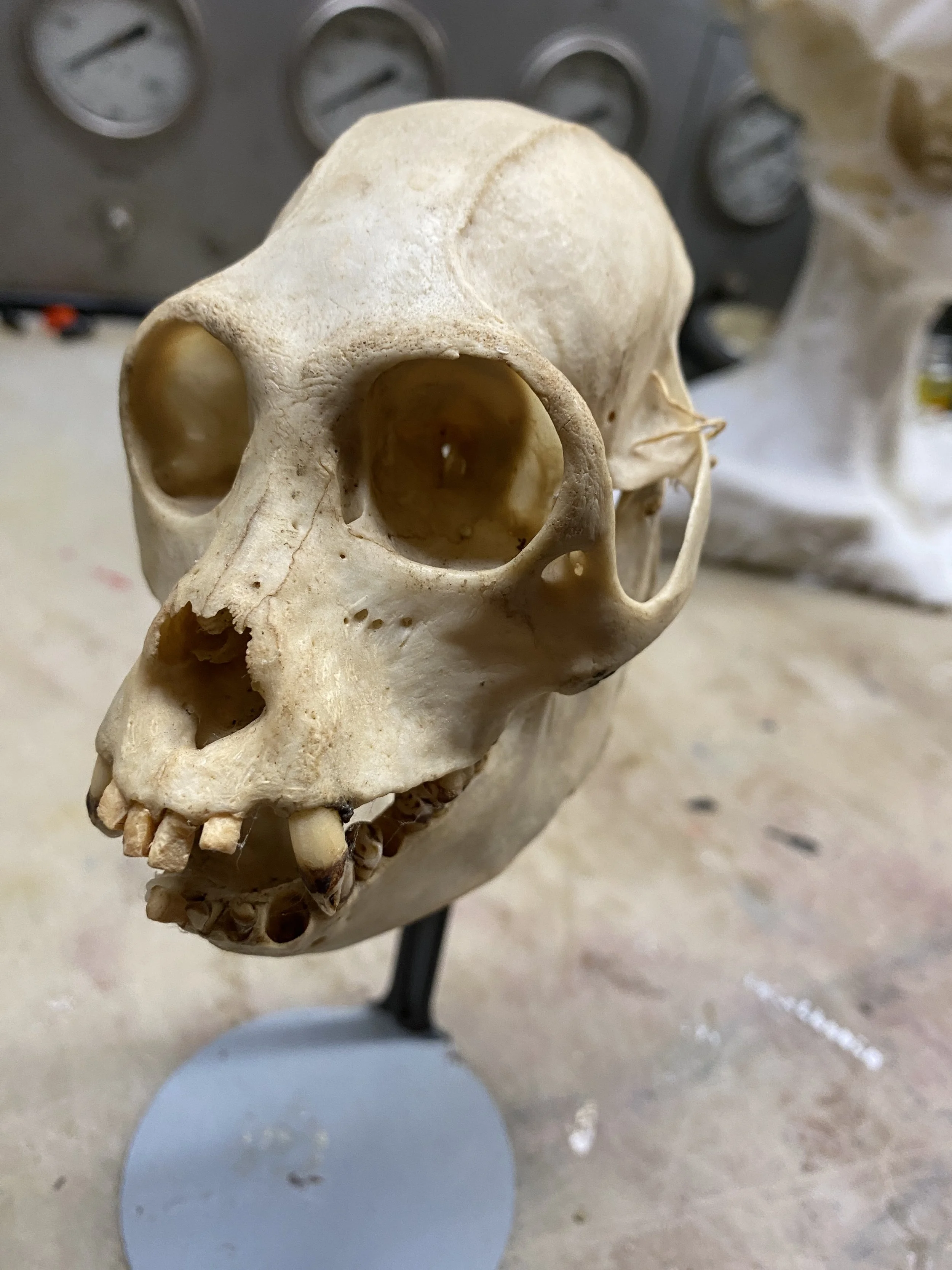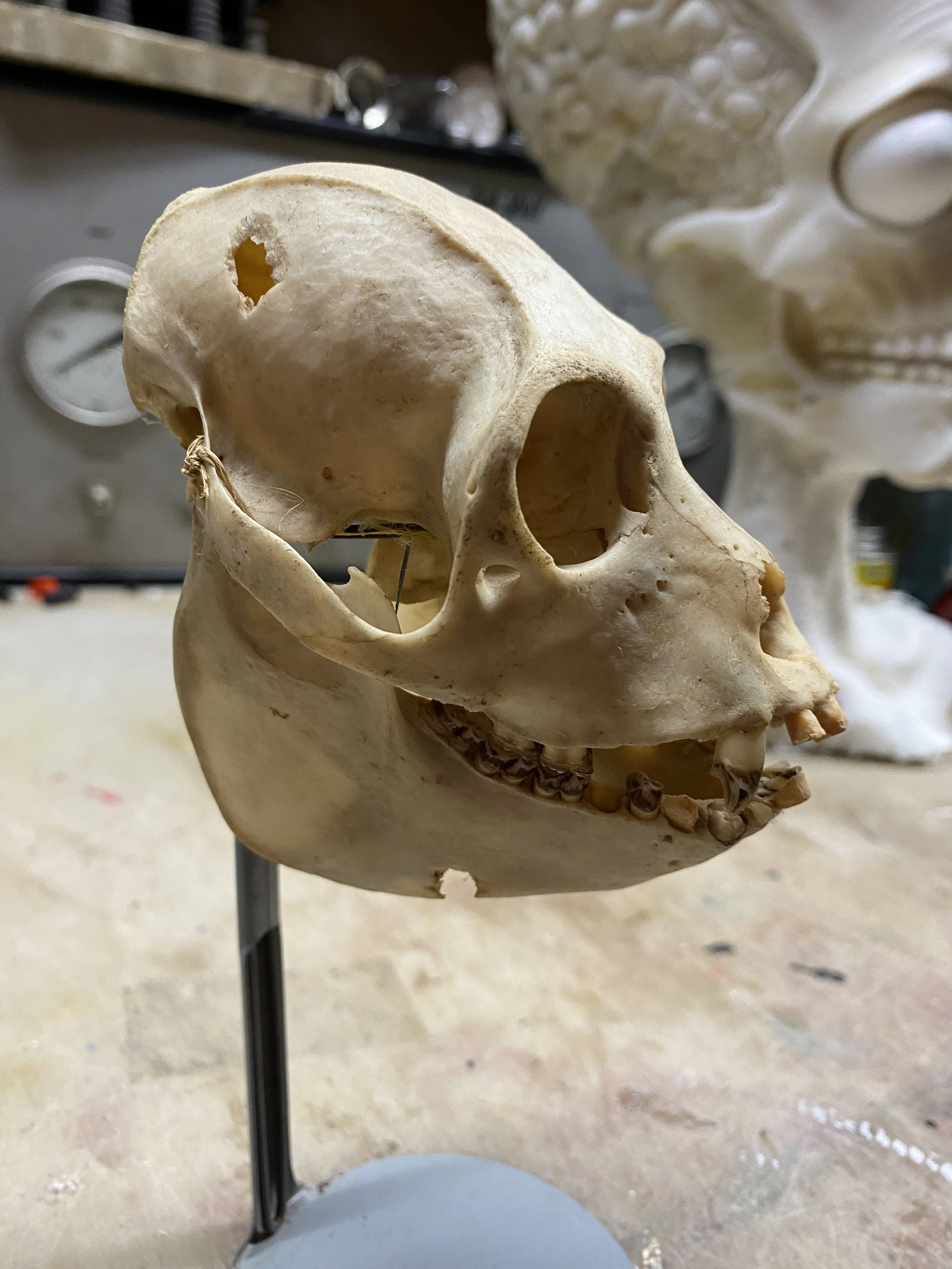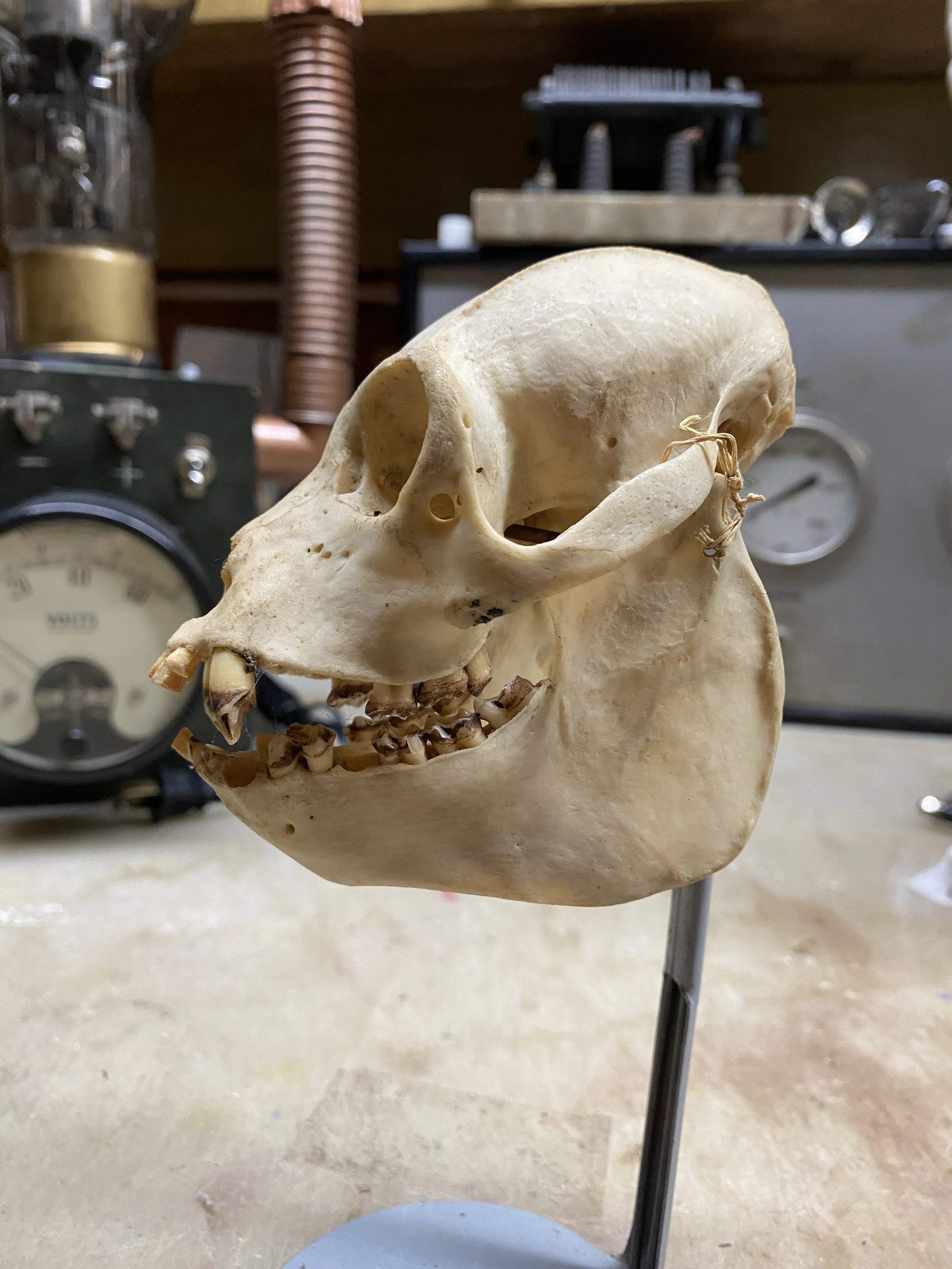 Vintage medical school human skull made by the now defunct Medical Plastics Lab in Gatesville Texas—known for their very accurate depictions of human bones.