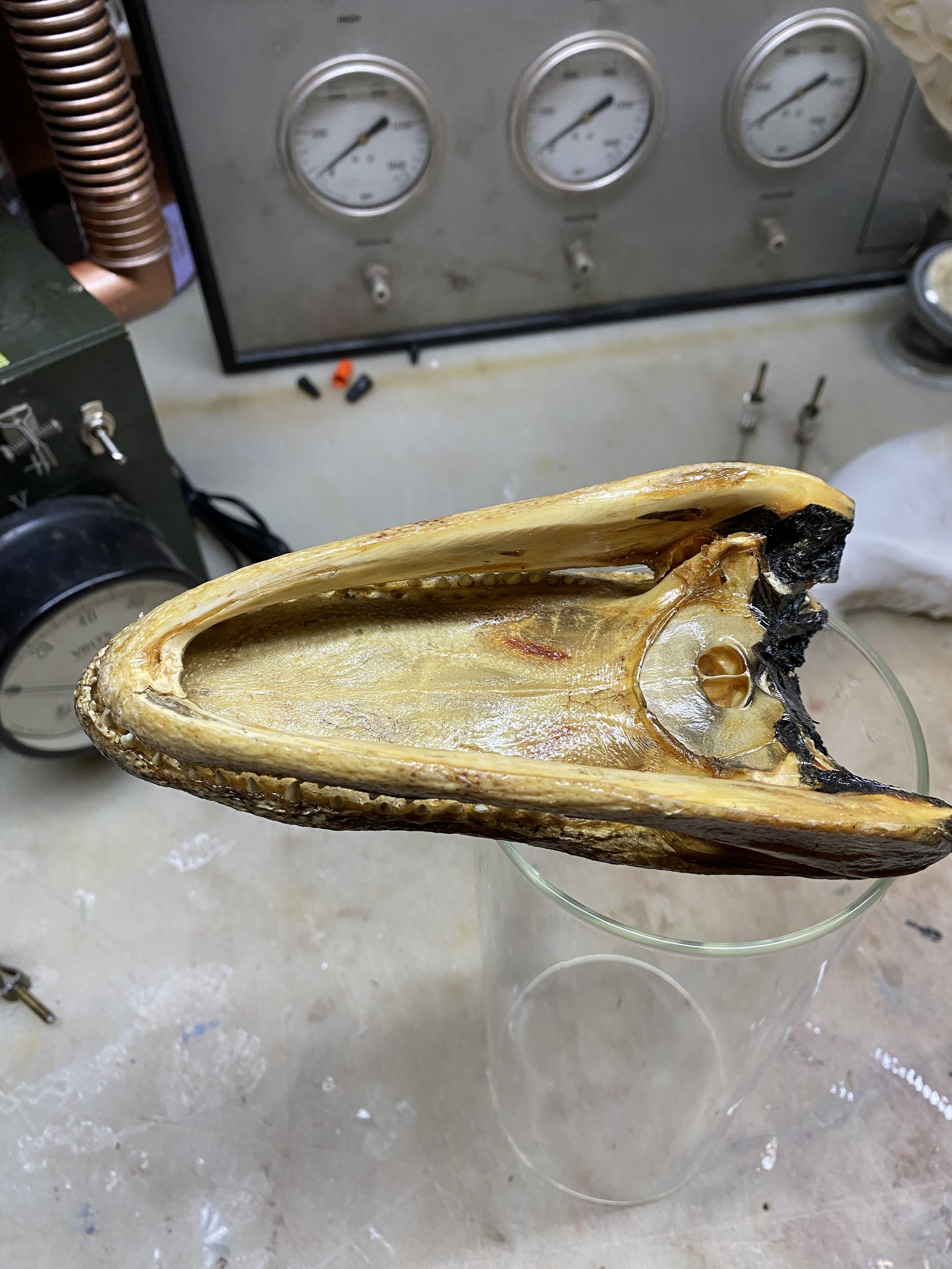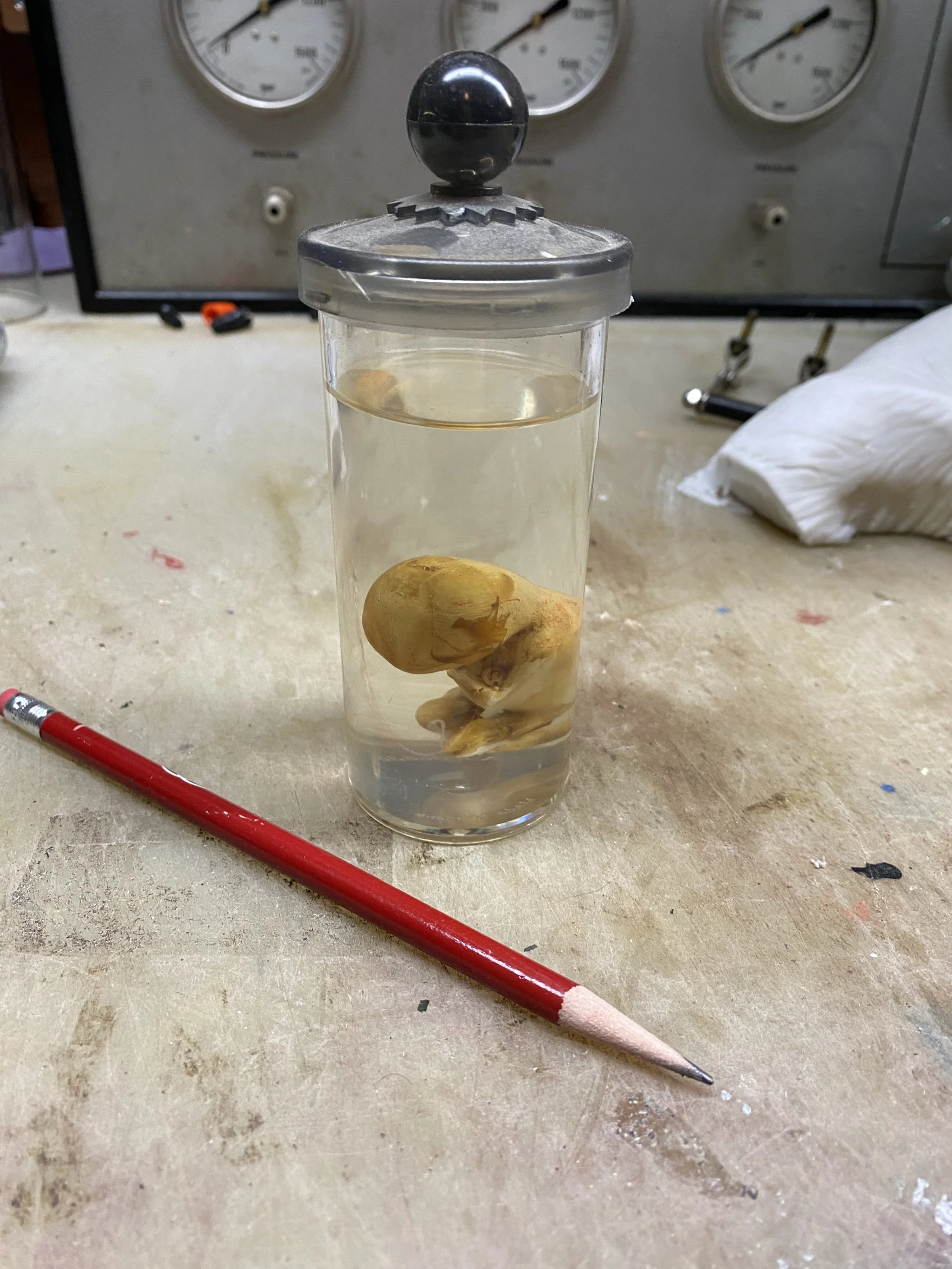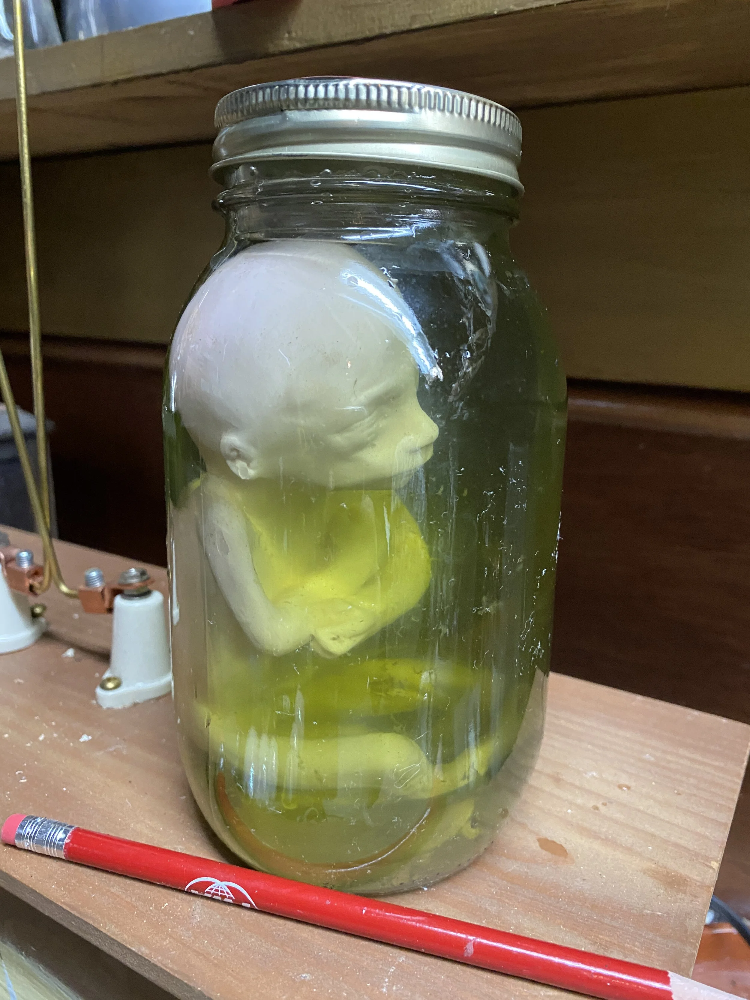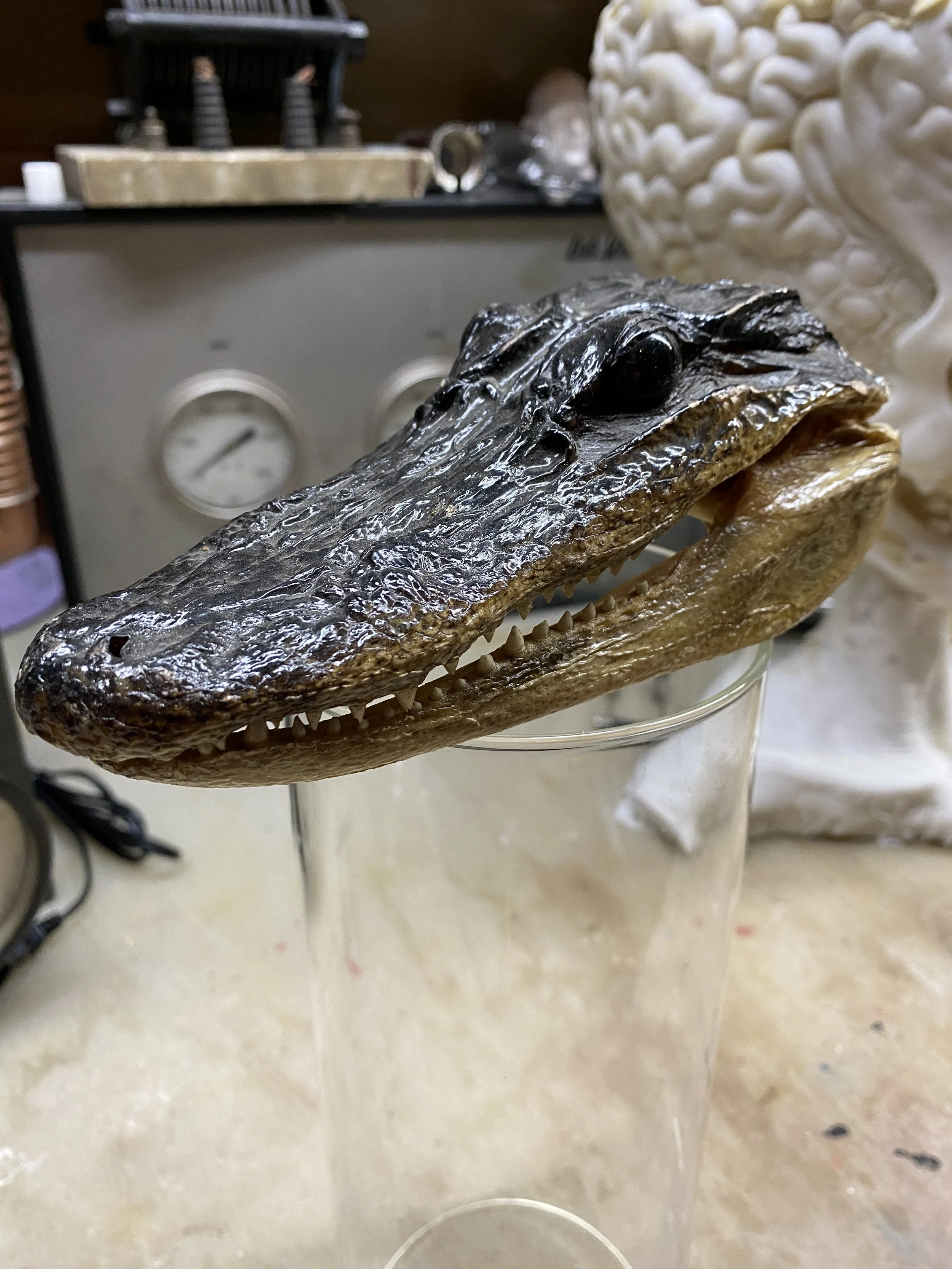 Vintage medical school human skull made by the now defunct Medical Plastics Lab in Gatesville Texas—known for their very accurate depictions of human bones.